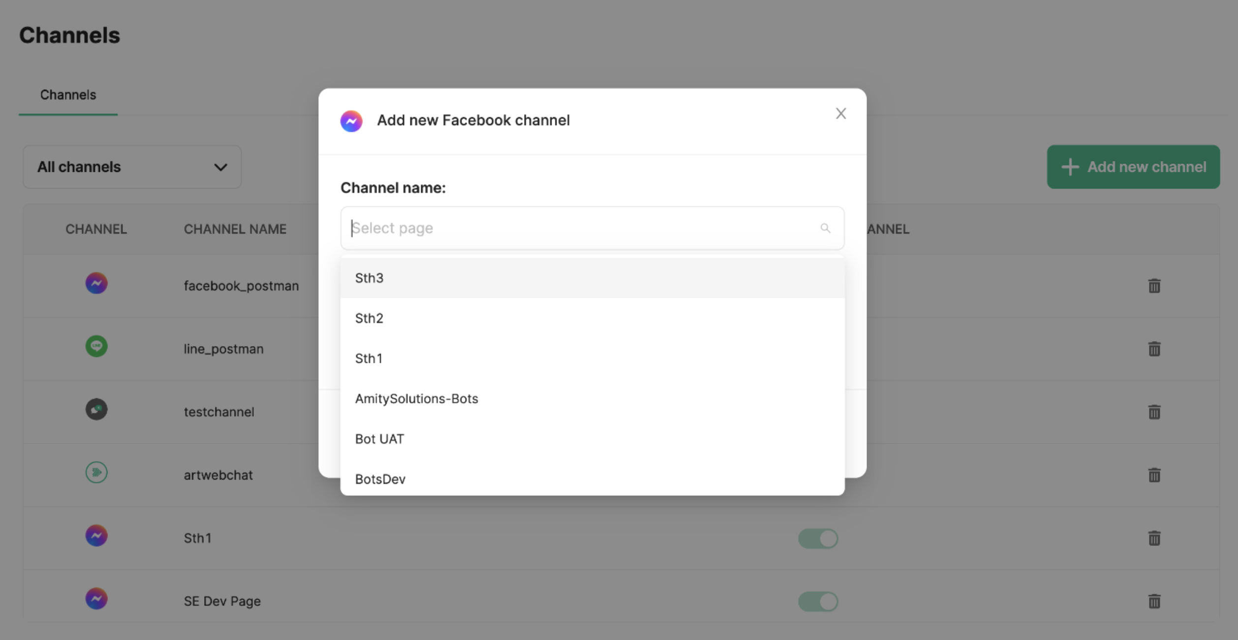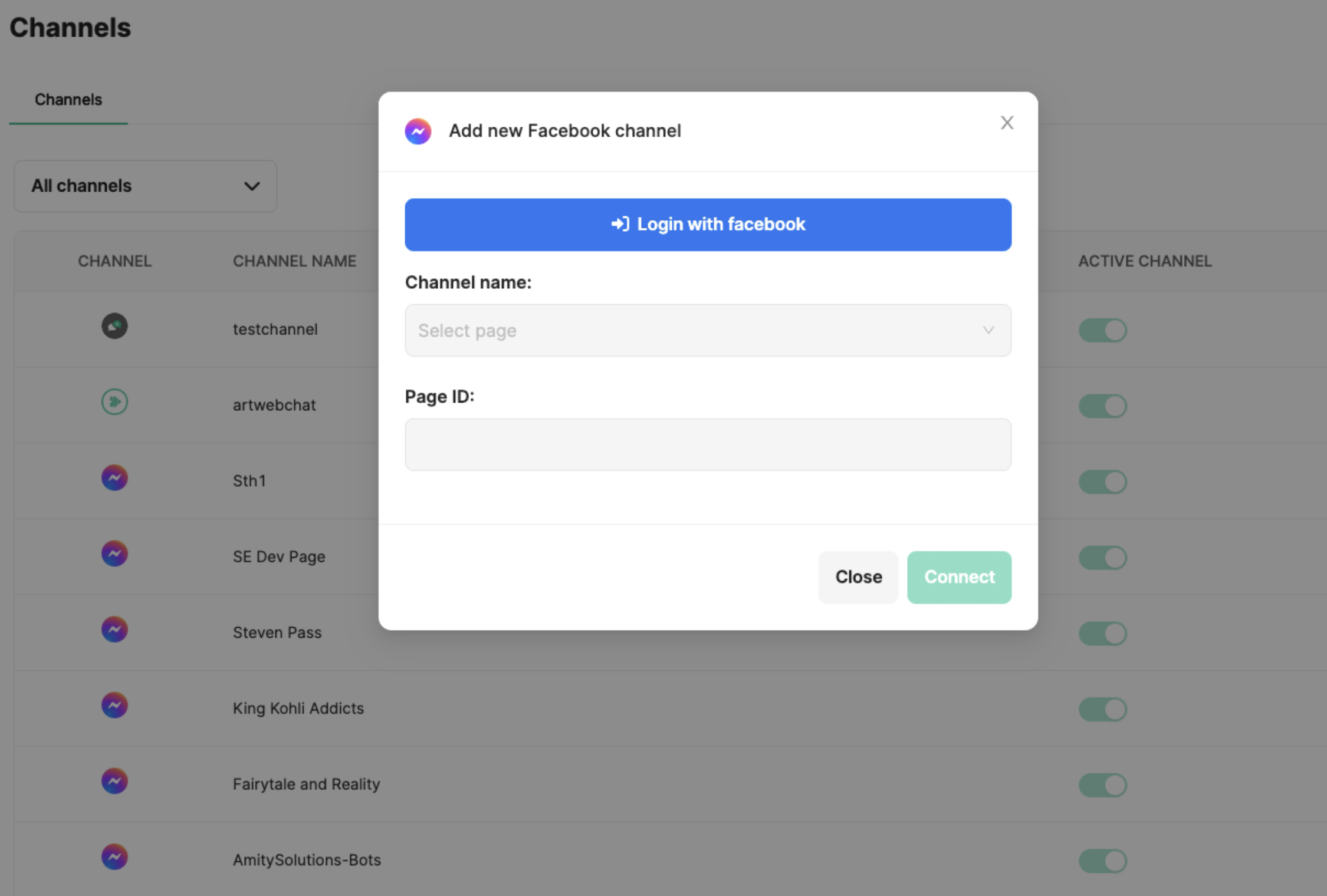 A new channel will be created, linking your Amity Bot to the chosen Facebook page. When users interact with your Facebook page, they'll be communicating with your Amity Bot.